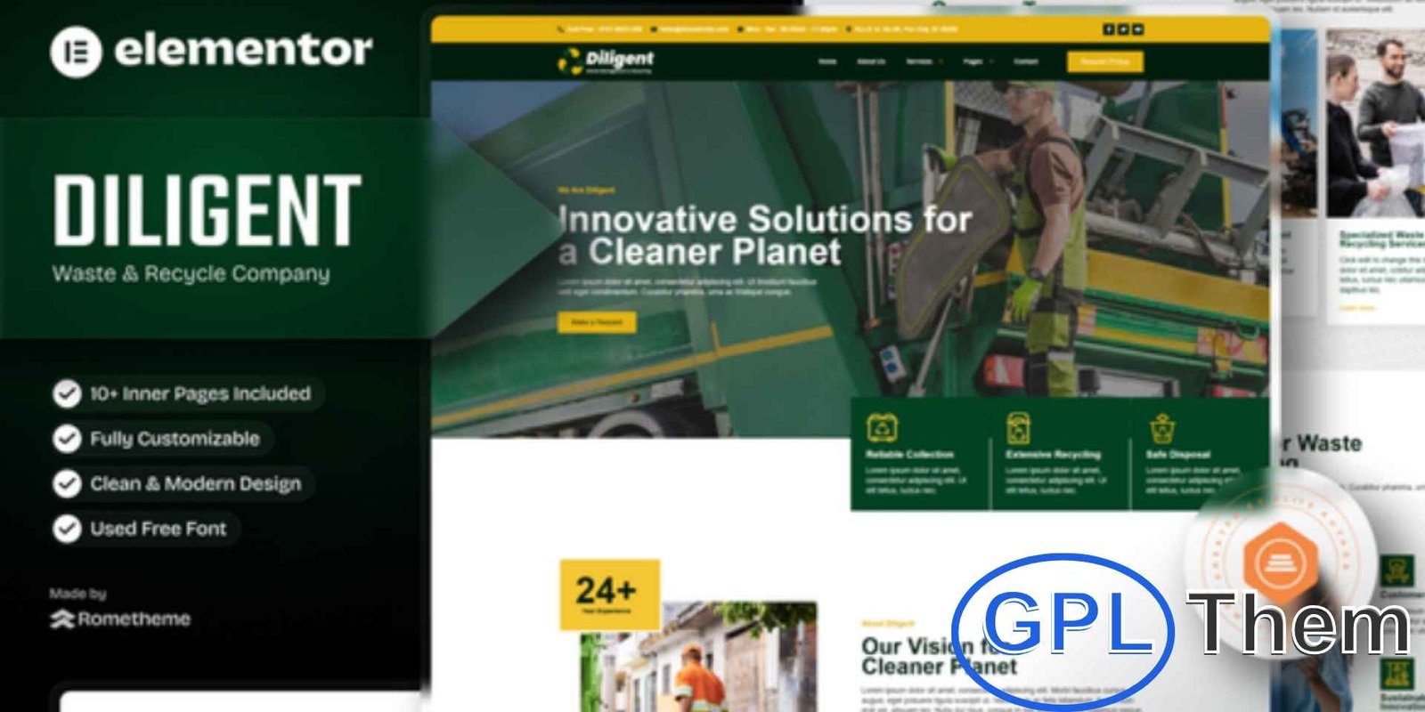 Diligent is a modern and eco-friendly Elementor Template Kit designed specifically for waste management, recycling, environmental services, and sustainability businesses. Whether you manage a recycling plant, waste collection service, or eco-solution company, Diligent helps you build a clean, professional, and impactful online presence effortlessly.