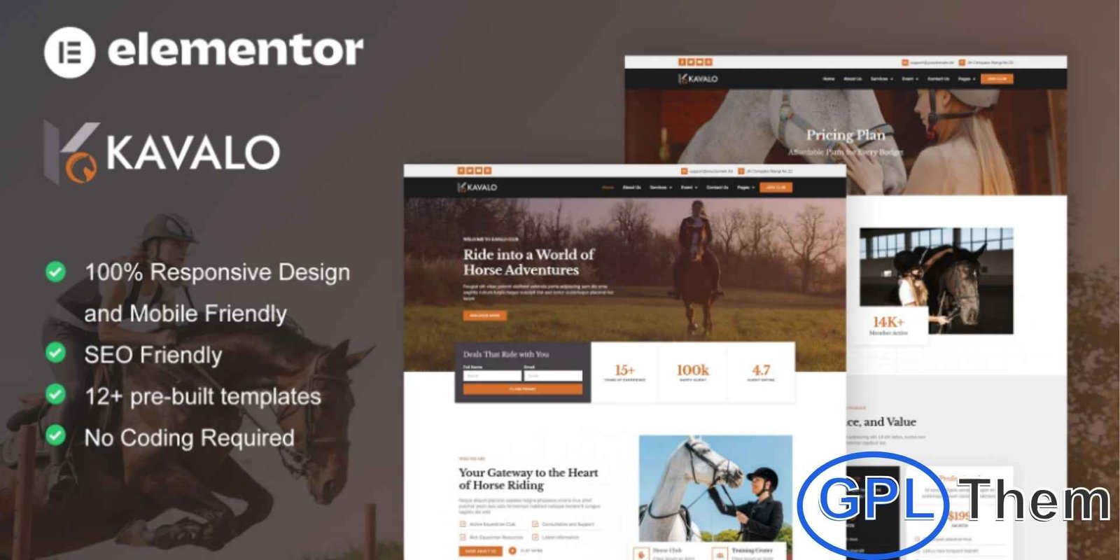 Kavalo is a beautifully crafted Elementor Pro Template Kit designed specifically for horse riding clubs, equestrian communities, horse stables, and outdoor activity centers. With its clean layout and modern styling, this kit helps you build a professional, engaging, and easy-to-navigate website without writing any code. It includes 12+ pre-built templates that perfectly showcase riding programs, training services, horse care, membership details, and club activities. Every page is optimized for a seamless browsing experience across all devices, ensuring your equestrian brand looks stunning everywhere. Whether you’re promoting a riding school, horse breeding facility, or a sports club, Kavalo provides a polished and feature-rich foundation to elevate your online presence.