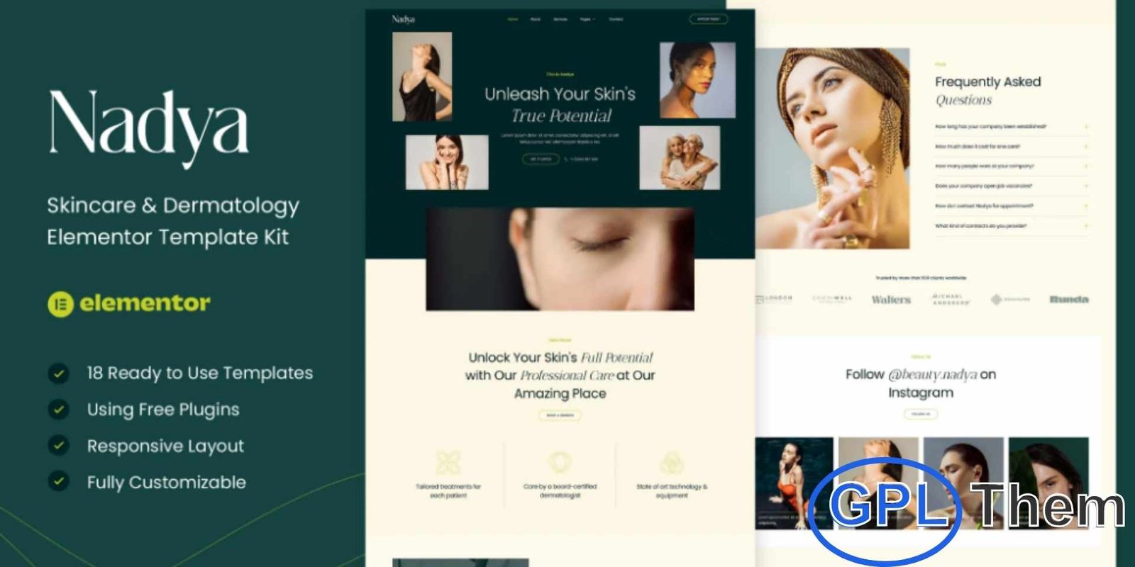 Nadya is a modern and professional Elementor Template Kit designed specifically for skincare, dermatology, cosmetology clinics, beauty centers, and spa businesses. This template kit offers a clean and elegant design that highlights your services, treatments, team, and client testimonials effectively. Fully responsive and retina-ready, Nadya ensures a seamless browsing experience across all devices. Built with Elementor, it’s easy to customize without any coding knowledge, making it perfect for beauty professionals looking to establish a strong online presence.