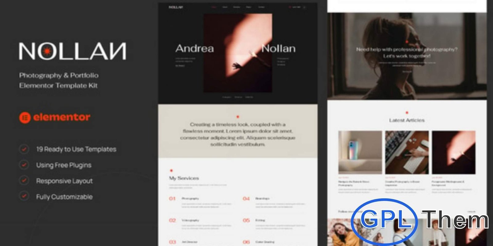 Nollan is a sleek and modern Photography & Portfolio Elementor Template Kit designed for photographers, videographers, creative professionals, agencies, and anyone who wants a stylish way to showcase their work online. With its clean layout and fully responsive design, Nollan highlights your visuals beautifully on any device. Built for effortless customization, this kit allows you to create a professional and engaging portfolio website without writing a single line of code. Featuring 15 expertly crafted pages and 19 stunning templates, Nollan offers everything you need to build a standout online presence in just a few clicks.