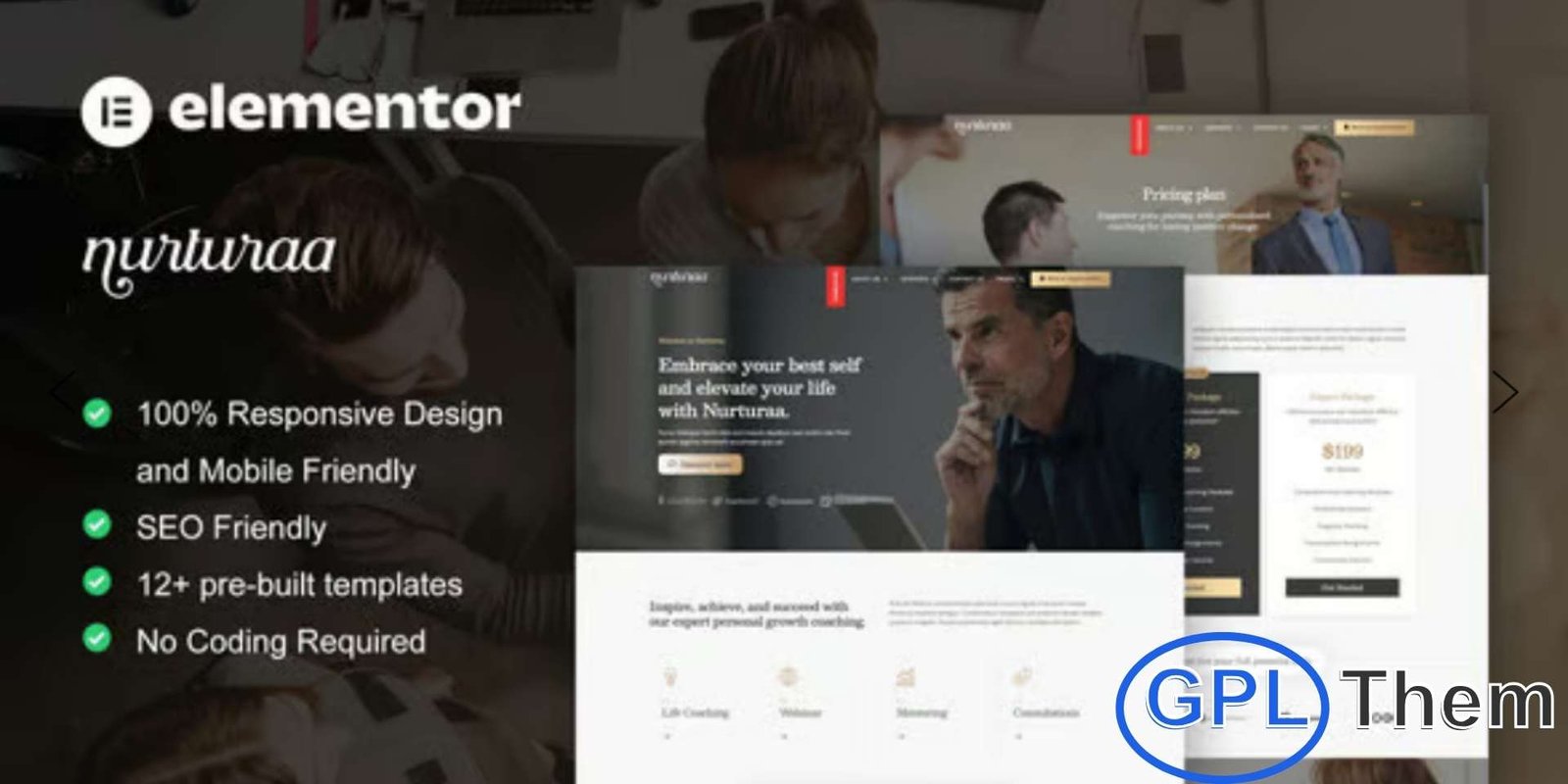 • 12+ pre-built Elementor Pro templates for coaching and motivational websites