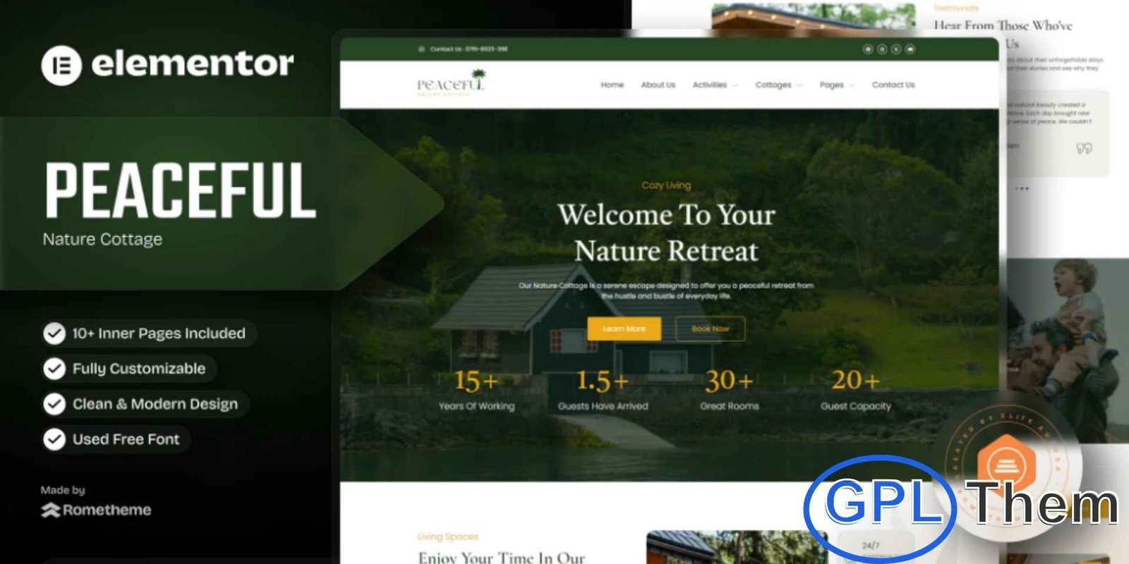 Peaceful – Nature Cottage Elementor Template Kit