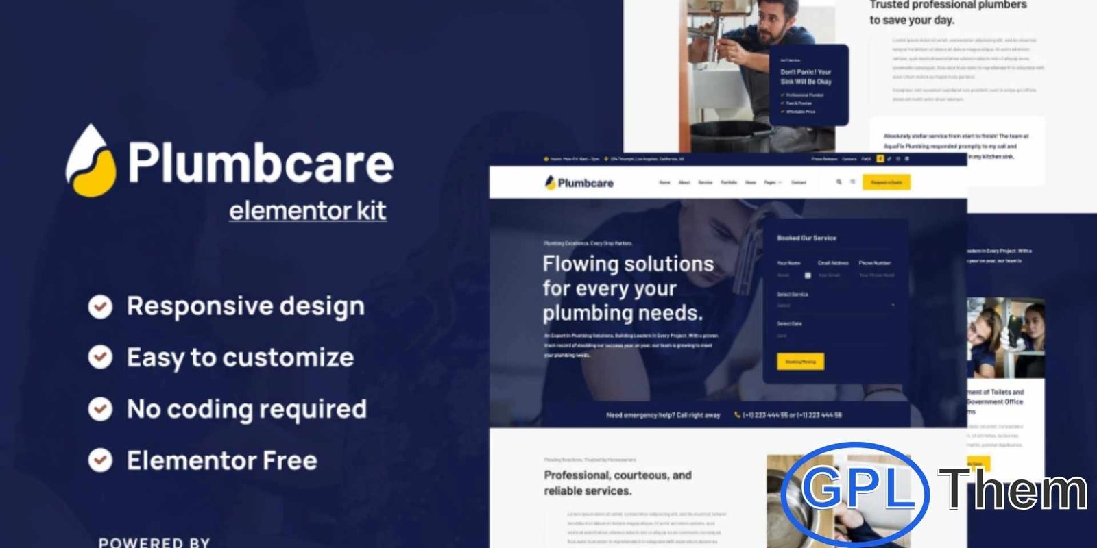 PlumbCare is a professional and modern Elementor Template Kit designed for plumbing services, home repair businesses, and maintenance companies. With a clean, simple, and contemporary layout, PlumbCare helps you showcase your services, team, and expertise in a professional and engaging way. Fully compatible with the free version of Elementor, this kit is ready to import and reusable, making it ideal for plumbing, handyman, painting, cleaning, and other service-oriented websites. Optimized for the lightweight Hello Elementor theme, PlumbCare ensures fast performance and a fully responsive experience across all devices.
