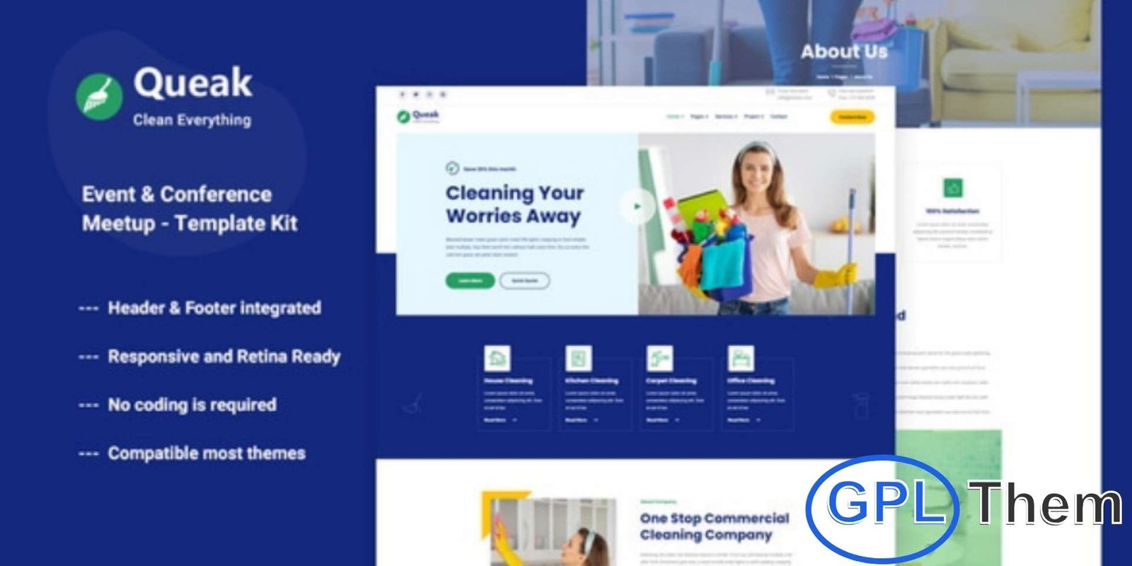 Queak is a professionally designed Elementor Template Kit created specifically for cleaning service companies looking to build a clean, modern, and high-performing website with ease. Designed to work seamlessly with the Elementor Page Builder, this kit allows you to launch your business website quickly—without any coding skills required. Optimized for the free Hello Elementor theme and compatible with most Elementor-supporting themes, Queak offers full responsiveness and smooth performance across all modern devices and browsers.