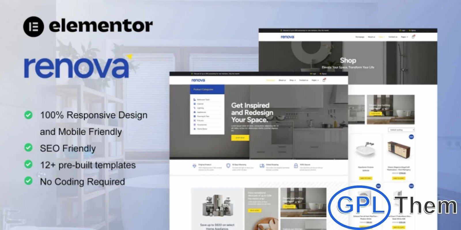 Renova is a premium Elementor Pro Template Kit designed for WooCommerce stores specializing in kitchen, bathroom, and renovation supplies. Perfect for kitchenware shops, home improvement stores, or interior design product sellers, Renova makes it easy to showcase and sell your products online. With 12+ pre-built templates featuring a clean, modern design, you can also create blogs, guides, and product showcases to engage your audience and boost your online presence.