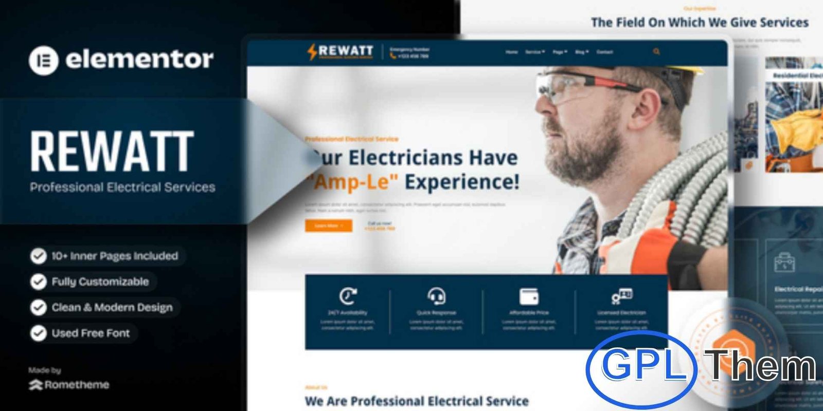 Rewatt is a modern, fully responsive Elementor Template Kit designed specifically for electricians and professional electrical service businesses. Featuring 12+ pre-built, beautifully crafted templates, this kit offers a clean layout, seamless customization, and a user-friendly design that helps you launch a high-quality website quickly and effortlessly. Whether you provide electrical installation, maintenance, or repair services, Rewatt delivers everything you need to build a powerful online presence without any coding.