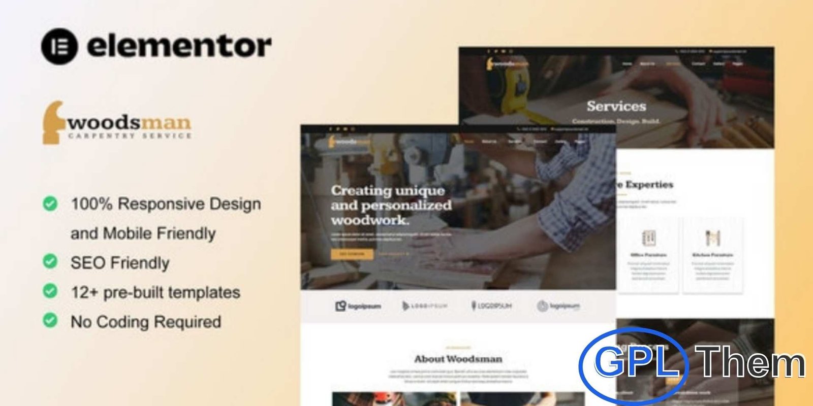 Woodsman is a modern and clean Elementor Template Kit built specifically for carpenters, craftsmen, and woodworking professionals. Featuring a sleek, professional, and fully responsive design, this kit makes it easy to create a stunning website for your carpentry business. Perfect for showcasing woodworking, furniture repair, custom furniture design, wood construction, and interior woodwork services, Woodsman allows you to build a professional online presence effortlessly with Elementor—no coding required. Create a stylish, functional, and engaging website that highlights your craftsmanship and attracts new clients.